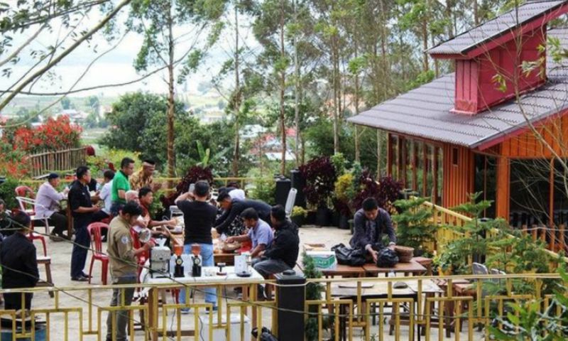 Di sini kamu bisa melihat perkebunan kopi, melihat pasca panen kopi, kemudian proses penyangraian kopi, dan menyeduh kopi langsung dari barista.