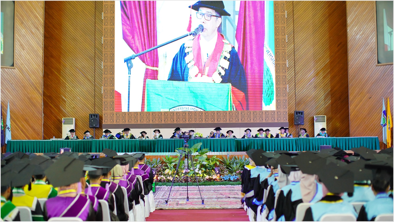 Rektor Unand Prof. Dr. Yuliandri menyampaikan pesan kepada wisudawan agar tetap menjaga integritas, jujur dan berbakti kepada kedua orang tua.