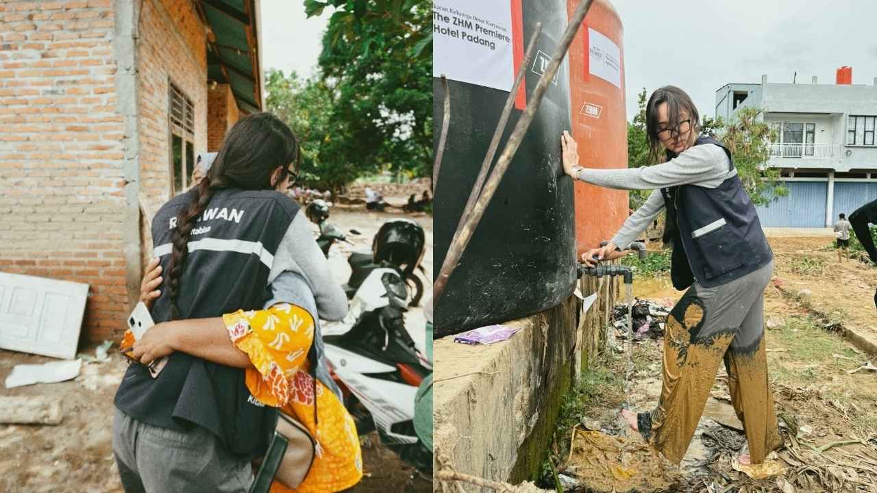 Ia menjadi relawan bersama tim Kitabisa. Menggunakan rompi relawan bewarna biru dongker, Yasmin mendatangi beberapa titik lokasi, di antaranya Batu Busuk, Lubuk Minturun dan, Banda Gadang, Jumat (5/12/2025).